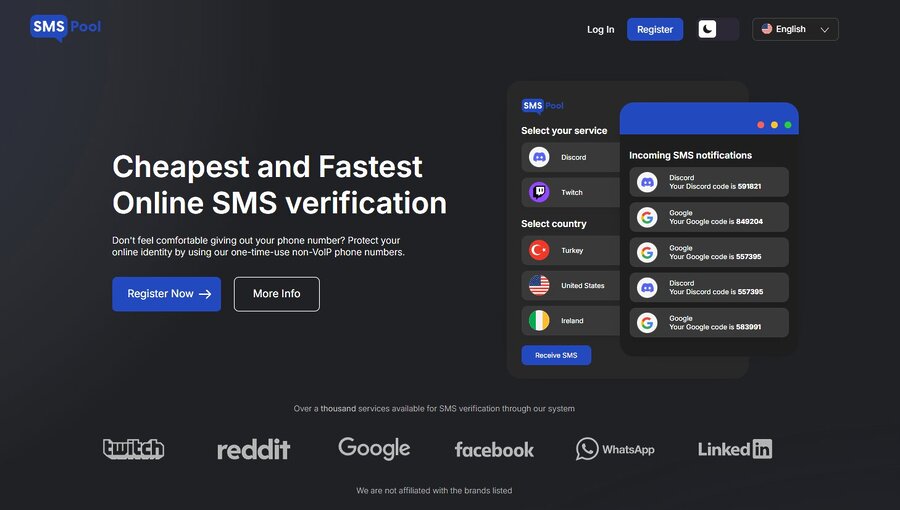 Overview: SMSPool’s paid service offers non-VoIP numbers for hundreds of services globally. You pay per successful verification. If the code doesn’t arrive, you don’t pay. They are a pure utility for account creation.