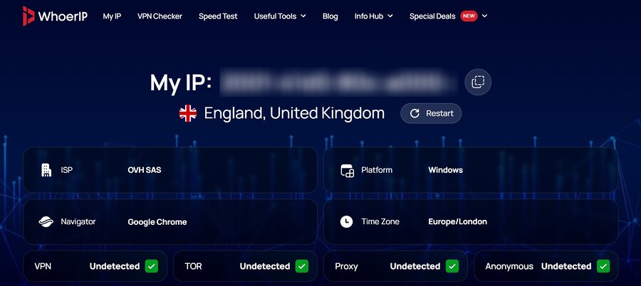 - Detected IP shown alongside your real one