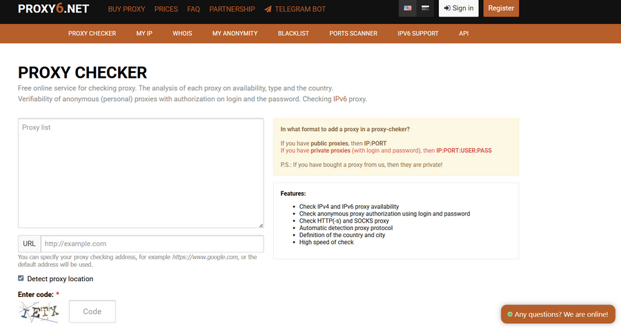 Works with Proxy6 proxies and external ones. Paste your list, run the check, get back status, speed, and country for each proxy. Nothing complicated about it.
