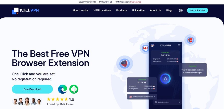 1ClickVPN is a good choice for a quick Brazilian IP address in Chrome or Edge. It works for accessing a specific Brazilian news site or store.