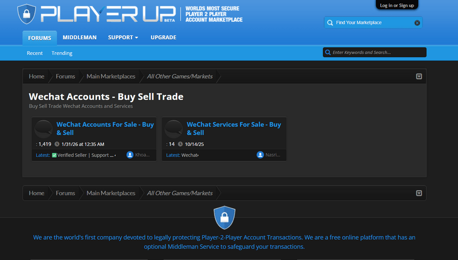PlayerUp is a massive middleman marketplace for digital assets. It has a dedicated section for WeChat accounts where users post listings for aged and verified profiles.