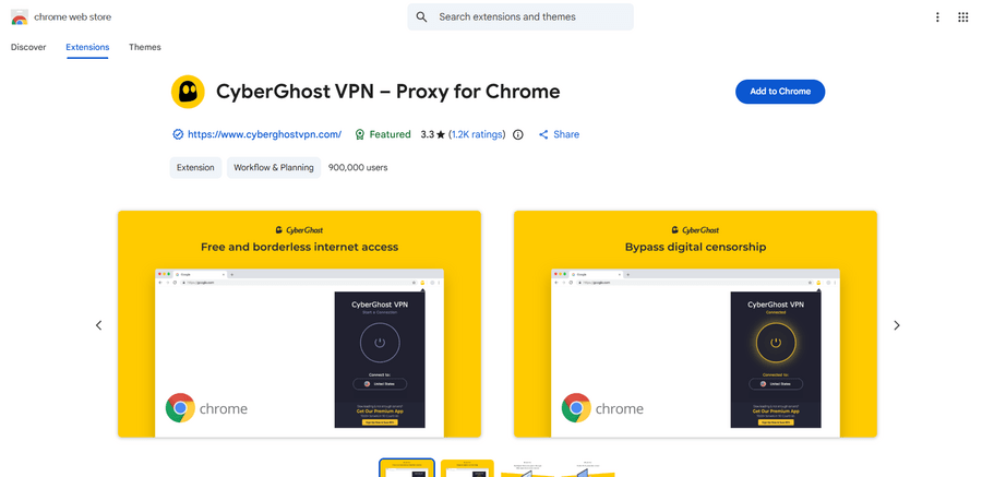 - Free proxy Extension: Routes only Chrome browser traffic through CyberGhost servers.