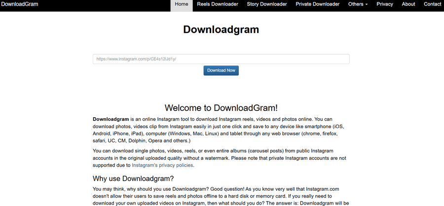 - Go to a trusted downloader such as DownloadGram or InstaSave.