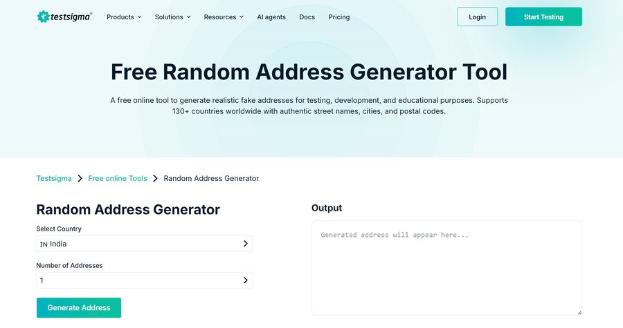 Origin: Testsigma is a test automation platform and so is its address generator geared towards QA and software testing workflows.