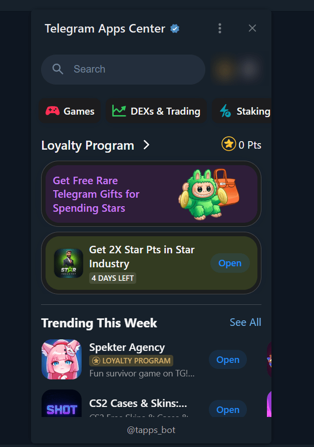 Telegram’s ecosystem now supports mini apps — lightweight web applications that run inside Telegram without requiring installation. These apps enable users to play games, complete tasks, or use services directly within chats — and many include built-in earning opportunities.